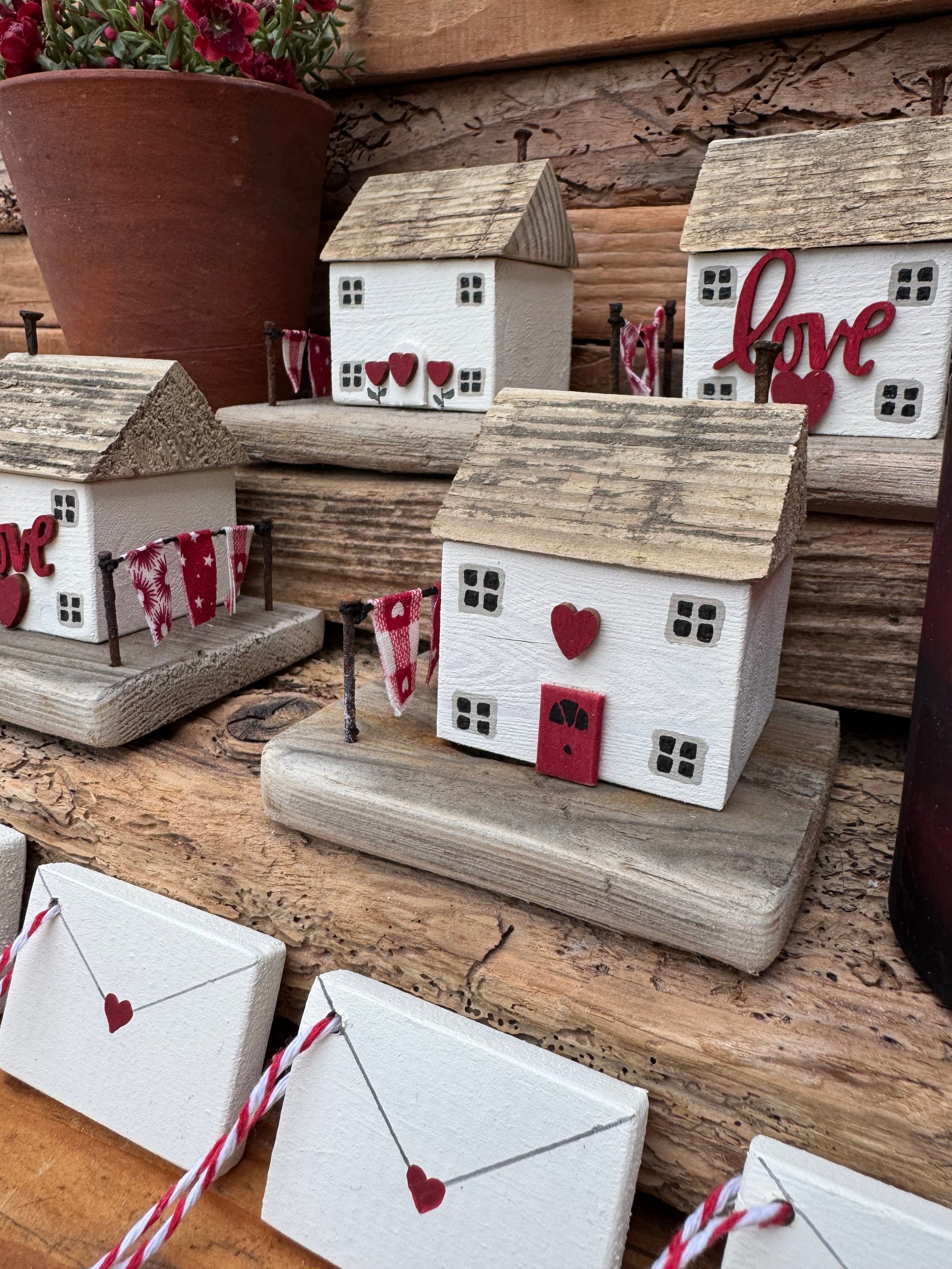 Pretty cottage with red heart above the door and gorgeous red & white washing line
