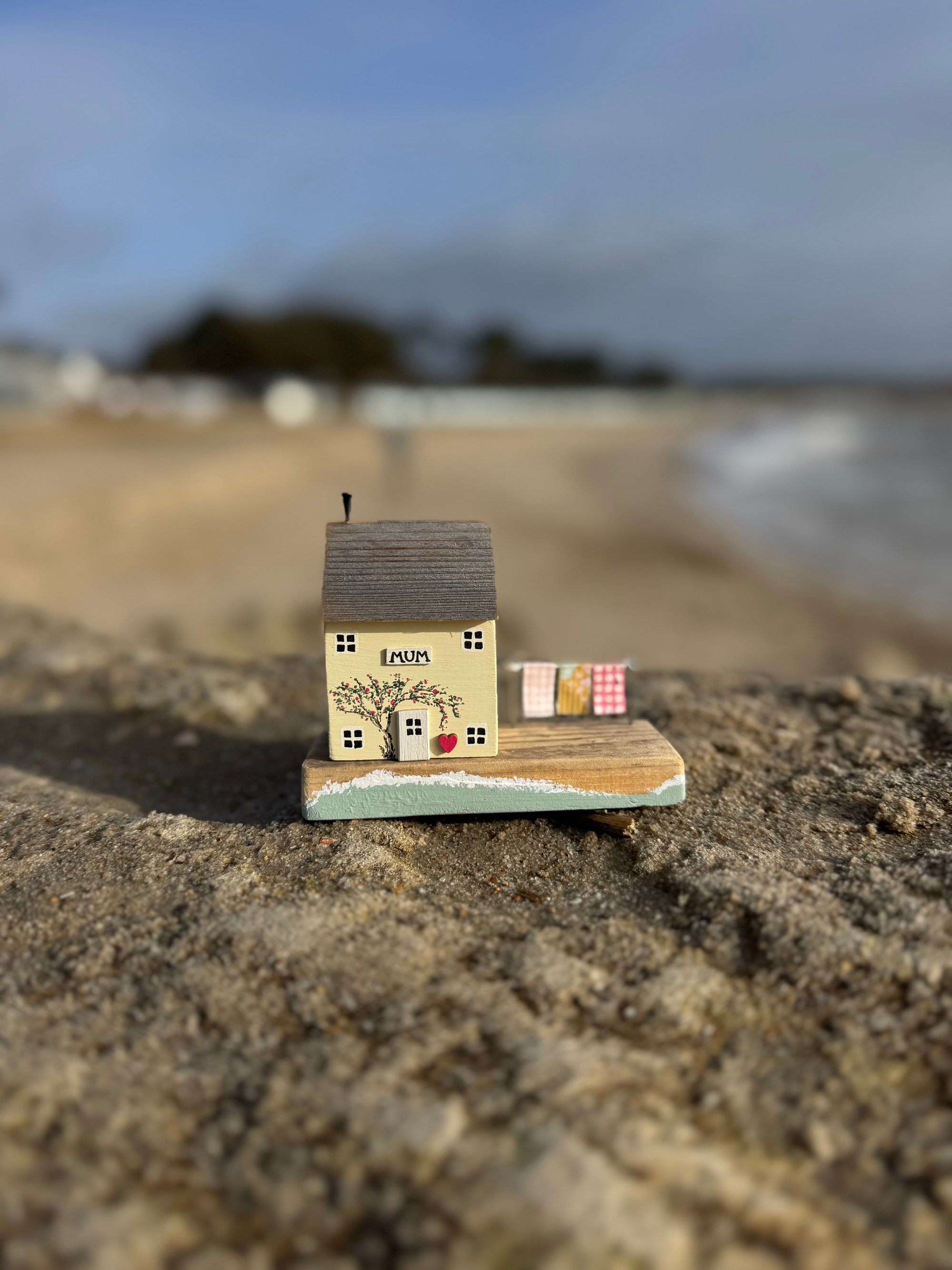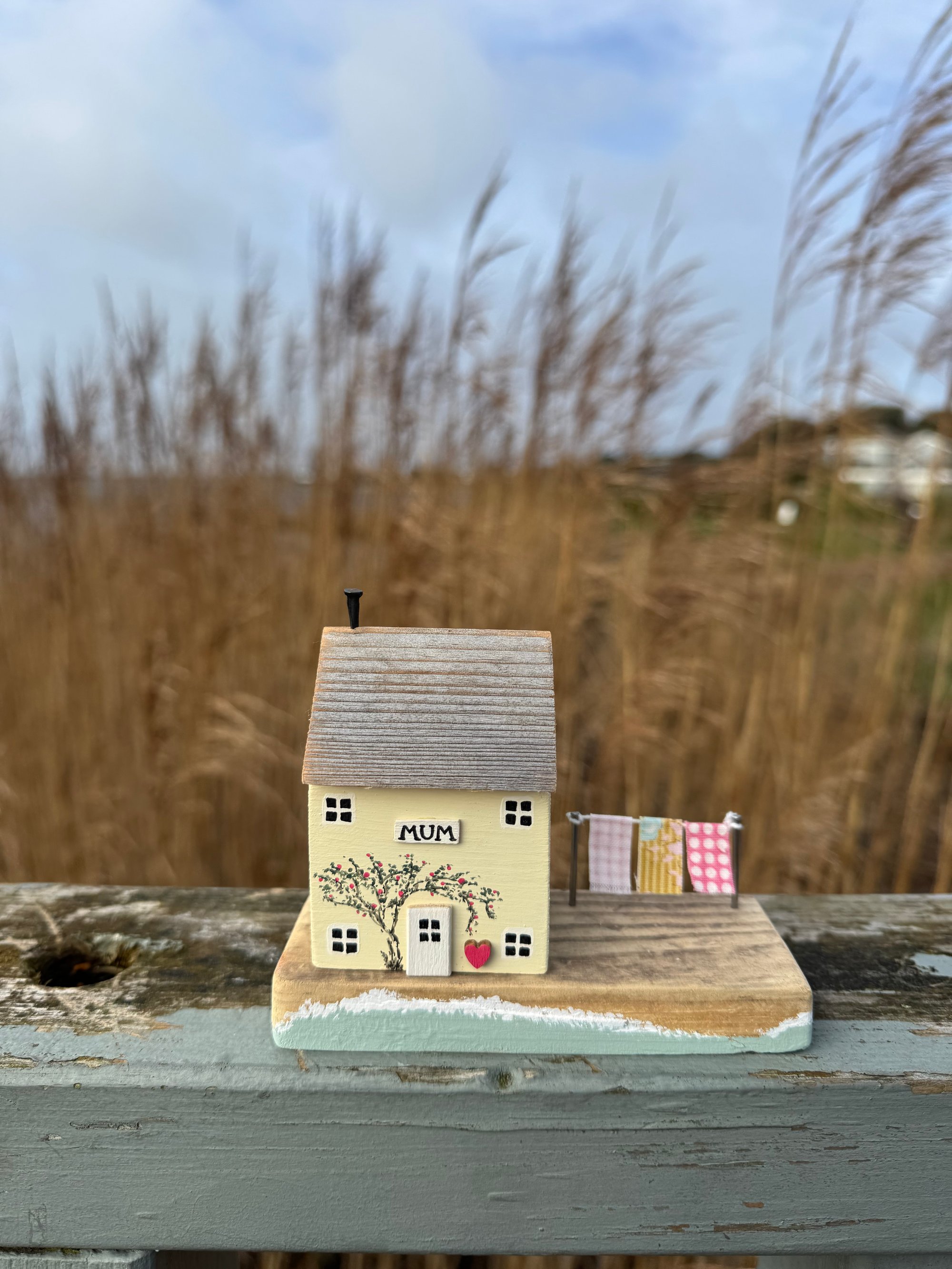 Pretty soft yellow cottage with MUM over the door and a tiny, pink heart